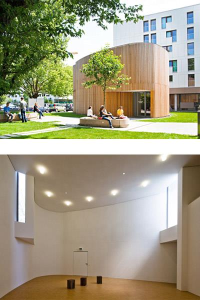 Das „Haus der Stille“ bietet Menschen aller Religionen und Kulturen Raum für Gebet, Meditation und Begegnung. Gleich einer Arche im lebendigen Meer des Campuslebens ist er ein beschützender Rückzugs- und Besinnungsort, an dem der Besucher Abstand vom Alltag und Muße zum Gebet findet.