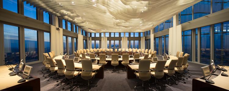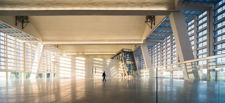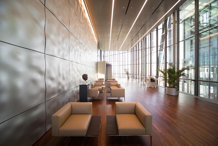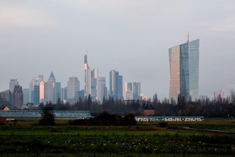 Der Neubau der Europäischen Zentralbank EZB auf dem Gelände der denkmalgeschützten ehemaligen Großmarkthalle von Martin Elsaesser nach den Plänen des Wiener Architekturbüros Coop Himmelb(l)au besteht aus einem in sich verdrehten gläsernen Doppelturm von 185 m Höhe. Die beiden Scheiben des Doppelhochhauses werden innerhalb eines gläsernen Atriums durch drei Brücken verbunden zwischen denen sich hängende Gärten ausbreiten. Die ehemalige Großmarkthalle wird durch einen Riegel angebunden, der die Halle durchschneidet.
