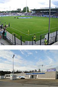 Durch die Abtragung des Südwalls wurde genügend Raum vor dem Stadion gewonnen, wo es vor dem Umbau zu Verkehrsbehinderungen und entsprechenden Sicherheitsproblemen kam. Winkelförmige Anbauten im Westen und Süden der bestehenden Tribüne beherbergen den Eingangsbereich und die Funktionsräume, VIP-Räume und Gastronomie finden sich in der Westtribüne.