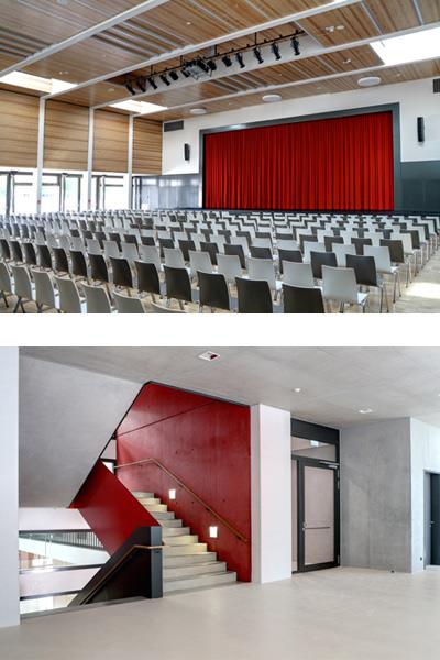 Gymnasium Riedberg, Aula und Treppenhaus Ost