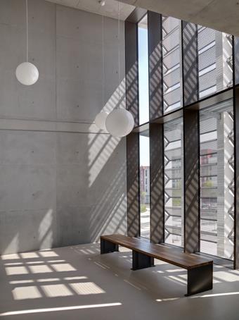 Gymnasium Riedberg, Foyer und Klassentrakt Mitte (unten)