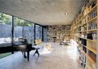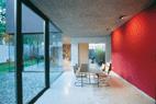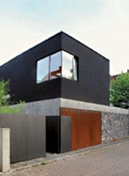 Auf einem kleinen Grundstück in dichter, vorstädtischer Umgebung sollte ein individuelles Einfamilienhaus geplant werden. Das Haus bildet mit dem Garten eine Einheit. Alle Räume sind entweder charakterisiert durch Öffnung zum Grünraum oder durch Introvertiertheit (Oberlicht). Die Stimmung des Hauses wird geprägt durch das Wechselspiel von Licht und Schatten, von Spiegelung und Reflexion und durch die sorgsam aufeinander abgestimmten Materialien – Sichtbeton, Basaltlava, Holz, Glas und farbige Putzflächen.