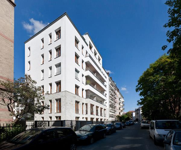Das Projekt interpretiert die gründerzeitliche Typologie des Seitenflügels, Gartenhauses sowie des Hauses im Blockrand neu. Bei hoher Verdichtung der Situation sind 27 völlig unterschiedliche Eigentumswohnungen mit sehr komplexen Grundrissen entstanden.
