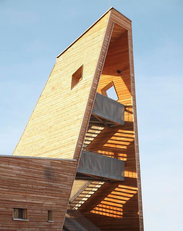 Bernhard Franken: „Die drei Flügel stehen zueinander wie Daumen, Zeigefinger und Mittelfinger einer Hand. Sie markieren die drei Grundrichtungen im Raum in x, y und z Richtung und damit die Grundvoraussetzung jeder Architektur als eine Ausdehnung im Horizontalen und Vertikalen – Erde und Himmel.“