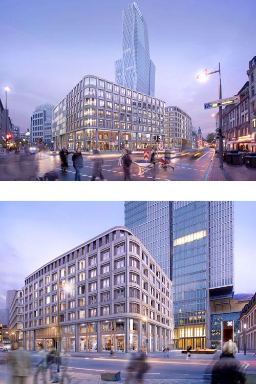 Das Gebäudekonzept der SRE sieht zwei eigenständige Baukörper vor, in deren Erdgeschossen jeweils Einzelhandelsflächen geplant sind. In den darüberliegenden Geschossen sollen in einem der Gebäude Büros und gegebenenfalls ein Hotel, in dem anderen Wohnungen entstehen. „Die hohe Nachfrage hat sicherlich dazu geführt, dass wir über einen höheren Wohnungsanteil als baurechtlich gefordert nachdenken“, betont SRE-Bereichsleiter Rhein-Main, Andreas Hülsken.
