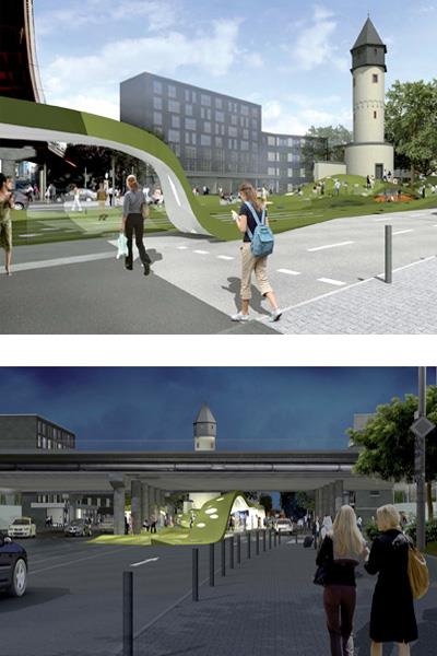 Jahrhunderts der Stadt Frankfurt und das Wahrzeichen des Stadtteils Gallus. Das Umfeld der Warte ist ein ausgesprochen stark frequentierter, zentraler Ort und durch die S-Bahnstation ein wichtiger Eingang in den Stadtteil. Dieser Stadtteileingang befindet sich in einem wenig repräsentativen, heterogenen Zustand und soll mit dem vorliegendem Wettbewerb eine angemessene Aufwertung erhalten.
