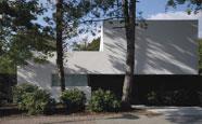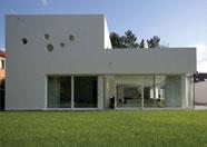 das flächig entwickelte gebäude besteht aus einer wohnebene auf gartenniveau und einer schlafebene mit großer dachterrasse darüber. ein rücksprung im erdgeschoss formuliert den eingang und bildet einen flächigen übergang in die garage. das gebäude verzichtet bewusst auf eine einfriedung an der grundstücksgrenze und steht somit als skulptur frei. durch die verlängerte außenwand an der hauskante bewahrt sich der pool- und gartenbereich die gewünschte intimität. an die großen fensterflächen nach süden schließen sich die terrassen und der aussenpool an und erweitern die räume. auch dem wunsch des bauherrn folgend sind alle oberflächen - mit ausnahme von betonestrich und fliesen - weiß. die brüstungen, fensterbänke und attikaabschlüsse sind ohne überstände und bleche ausgeführt und entsprechen der kubischen körperhaftigkeit des entwurfes.