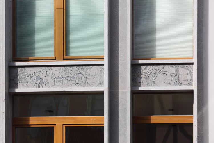 In der Fassadengestaltung wird die von Franken Architekten entwickelte Strategie des Nachbildes angewendet. Bei langer Betrachtung eines Objektes wird beim Schließen des Auges ein Phantombild auf der Netzhaut erzeugt. Dieses unscharfe Bild verblasst nach einiger Zeit. Bei jeder Rekonstruktion, wie beispielsweise auch bei der Dom-Römer-Bebauung in Frankfurt, wird lediglich ein Bild einer Vergangenheit erzeugt, die umso unschärfer wird umso näher man sie betrachtet.