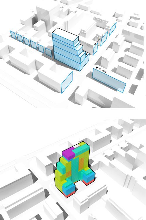 Wettbewerbsaufgabe: Die Wettbewerbsaufgabe sah vor, ein ca. 60 Meter hohes Wohnhochhaus mit rund 180 Wohnungen zu entwerfen.