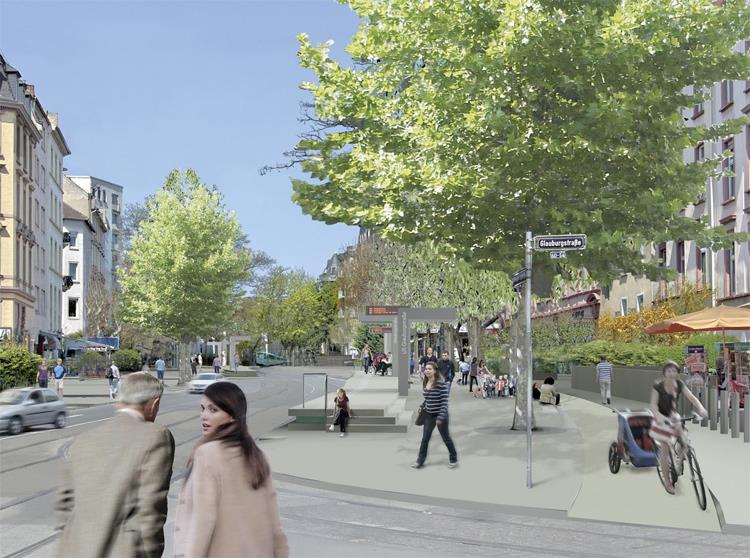 Aufgabe: Die Stationen „Musterschule“ und „Glauburgstraße“ werden für den oberirdischen Betrieb der Stadtbahn-Linie U5 entlang der Eckenheimer Landstraße umgebaut. Die neuen Haltestellen machen in Zukunft einen barrierefreien Zugang sowie den Einsatz längerer Drei-Wagen-Züge möglich. Eine entsprechende Machbarkeitsstudie hatte die VGF (VerkehrsGesellschaft Frankfurt) entwickelt. Auf ihrer Basis sollen im Rahmen eines Wettbewerbs gestalterisch anspruchvolle Lösungen gefunden werden, in der die straßenräumlichen und funktionalen Aspekte im Hinblick auf die Vorgaben zu Haltestellen-Ausformung und guter Orientierung für die Kunden berücksichtigt werden.?