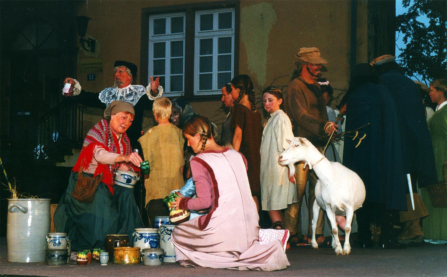 1993 gab es dann erstmalig wieder eine Freilichtaufführung auf dem Platz vor der Schelmenburg, die nach Einbruch der Dunkelheit angestrahlt, eine beeindruckende Kulisse zeigt. 1994 wurde das Schelmenspiel anlässlich der 1200-Jahrfeier der Stadt Frankfurt am Main vor dem Römer auf dem Römerberg aufgeführt.