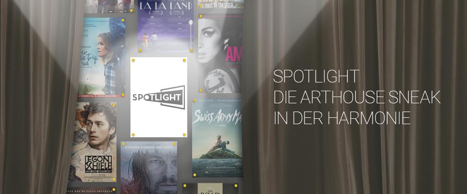 Sehen Sie Filme schon vor ihrem offiziellen Start in den deutschen Kinos! Mit der Arthouse-Sneak Spotlight öffnet das Harmonie Kino alle zwei Wochen die Überraschungskiste und garantieren ein anspruchsvolles Filmvergnügen für Cineasten, die gerne einmal über den eigenen Tellerrand schauen. Von exklusiven Vorpremieren über kleine Independent-Perlen bis hin zu denjenigen Filmen, die keinen regulären Kinostart bekommen. Die ersten Hinweise zum Film gibt es immer zwei Tage vorher auf der Facebook-Page des Harmonie Kinos unter: https://de-de.facebook.com/ArthouseKinosFrankfurt/