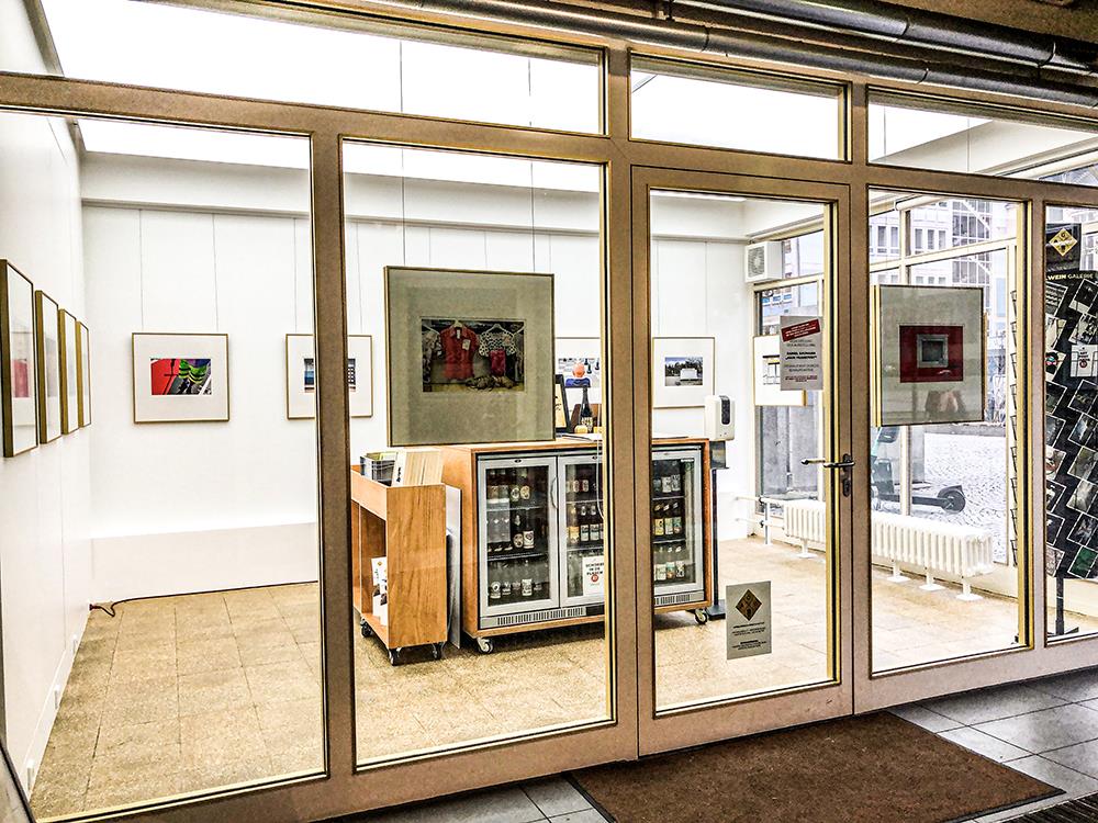 Die APFELWEINGALERIE liegt in der Kleinmarkthalle, Eingang West, Liebfrauenberg. Die Galerie ist klein, aber das Hängekonzept bezieht die großzügigen Schaufenster mit ein, sodass immer 8 Werke „von draußen“ zu sehen sind und eine Ausstellung genau 25 Arbeiten präsentieren kann.