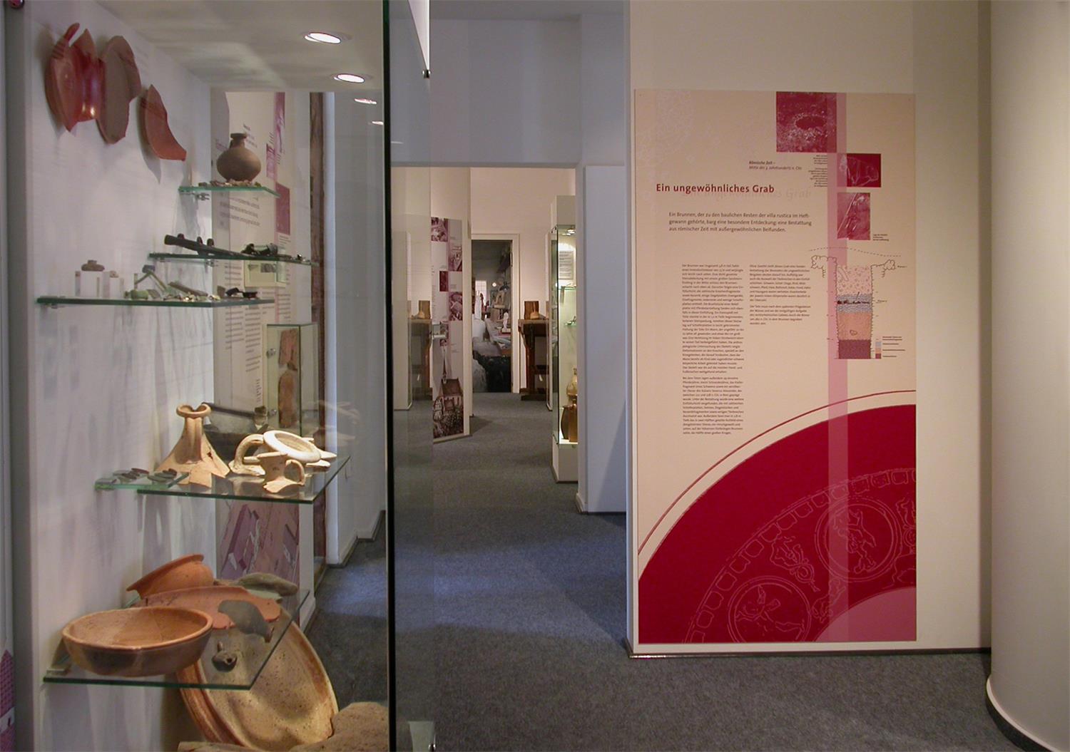 Im 2008 neu gestalteten Heimatmuseum präsentiert sich die Geschichte des Dorfes Schwanheim, das 880 erstmals erwähnt wurde. Zahlreiche Funde belegen die Besiedlung der Gemarkung bereits seit der ausgehenden Altsteinzeit. Der Nachbau eines Brunnenschachtes, der zu einem römischen Gutshof gehörte, bildet den Mittelpunkt der archäologischen Sammlung. Mittelalterliches Leben zeigen die vielfältigen Objekte der Wasserburg Goldstein. Die Werke der Bildhauer und Vergolder, die seit 1760 in Schwanheim ihrem Kunsthandwerk nachgingen, sind ein weiterer Höhepunkt der umfangreichen Ausstellung.