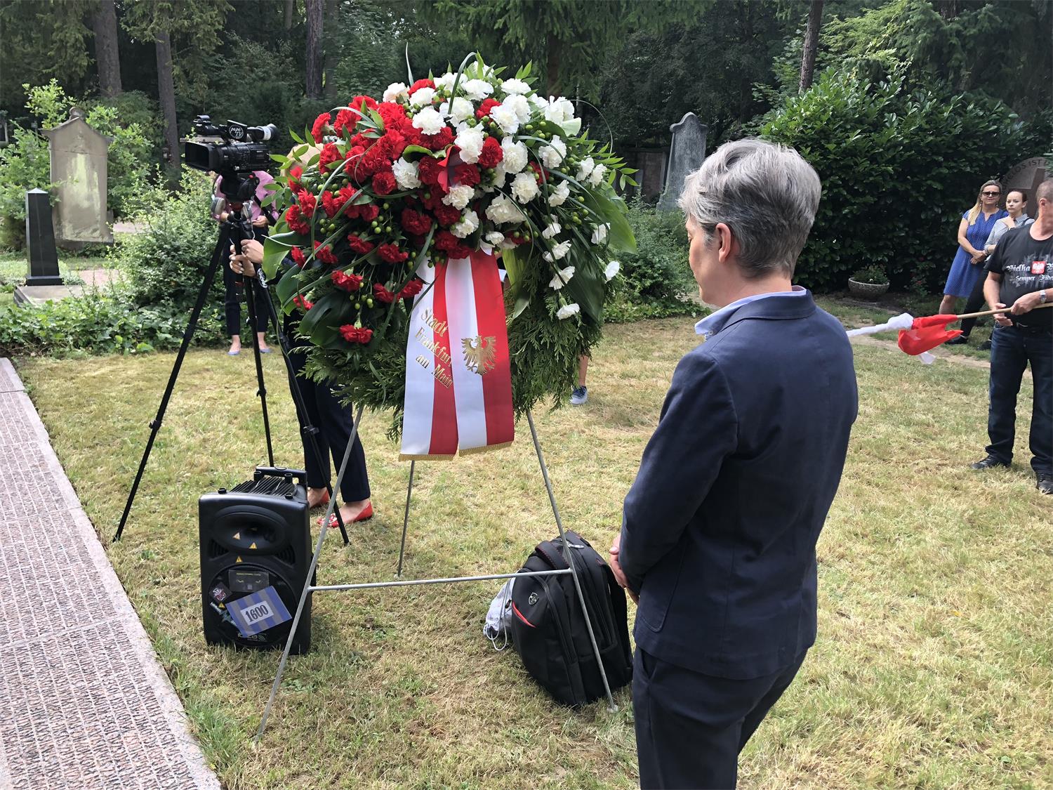 Am Nachmittag gedachten Generalkonsul Wawrzyniak und Kulturdezernentin Dr. Hartwig mit einer weiteren Veranstaltung und Kranzniederlegung an der Grabstätte der Opfer des Konzentrationslagers auf dem Hauptfriedhof der 528 Menschen, die als Gefangene in den Adlerwerken starben bzw. ermordet wurden. Zahlreiche Vertreter der Frankfurter Zivilgesellschaft und der polnischen Gemeinde in Frankfurt und in Hessen nahmen an der Veranstaltung teil.