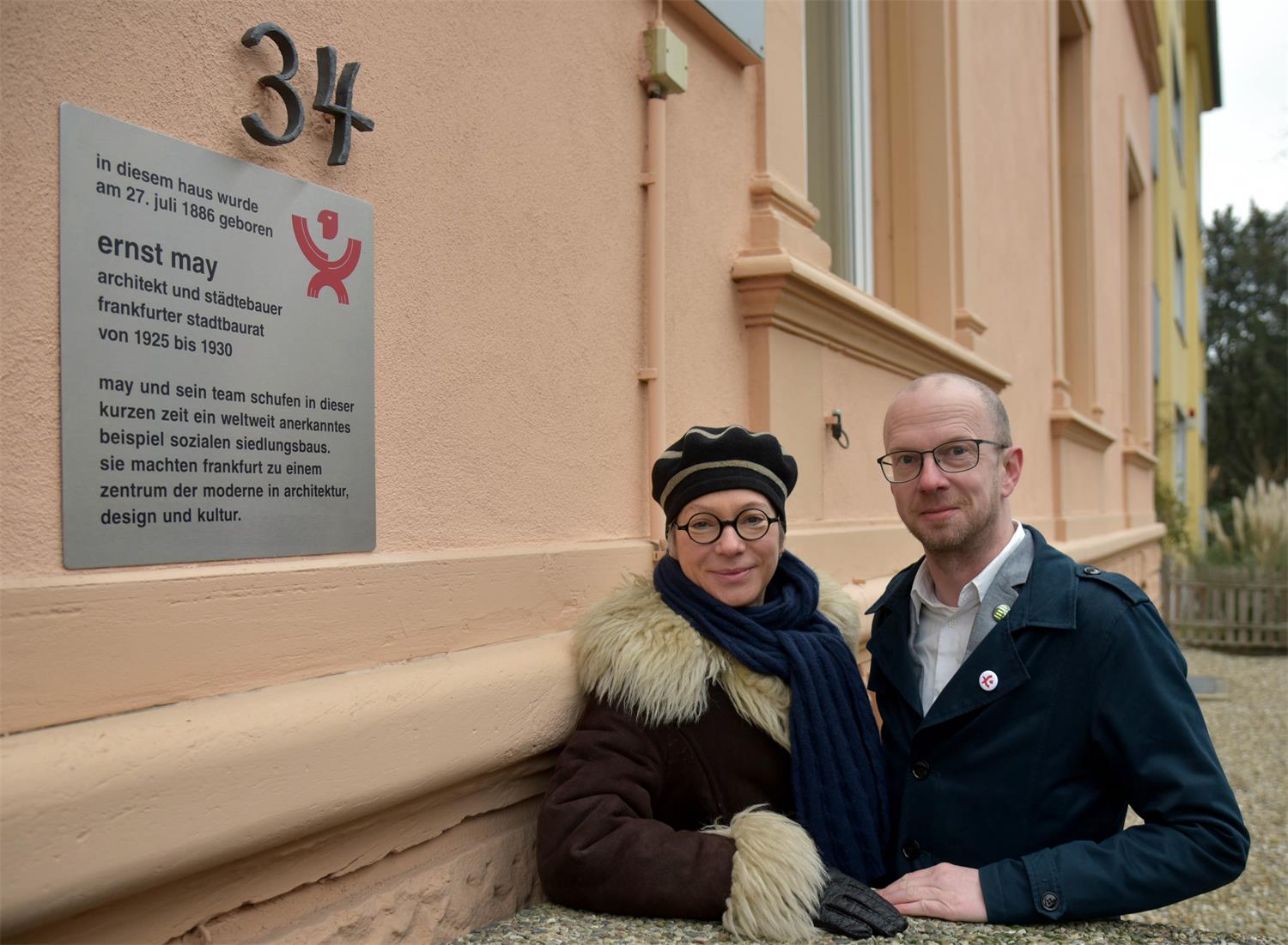 Dr. Ina Hartwig betonte in Ihrer Ansprache: „Ernst May ist einer der wichtigsten Akteure der einzigartigen Moderne-Utopie Neues Frankfurt. Sein Geburtshaus ist daher von Bedeutung für die Frankfurter Stadtgeschichte, auch wenn die Architektur dieses Hauses wenig mit dem Neuen Bauen gemein hat, für das May berühmt war. Mit Informationstafeln wie dieser wollen wir das Neue Frankfurt langfristig in der Stadtlandschaft verankern.“