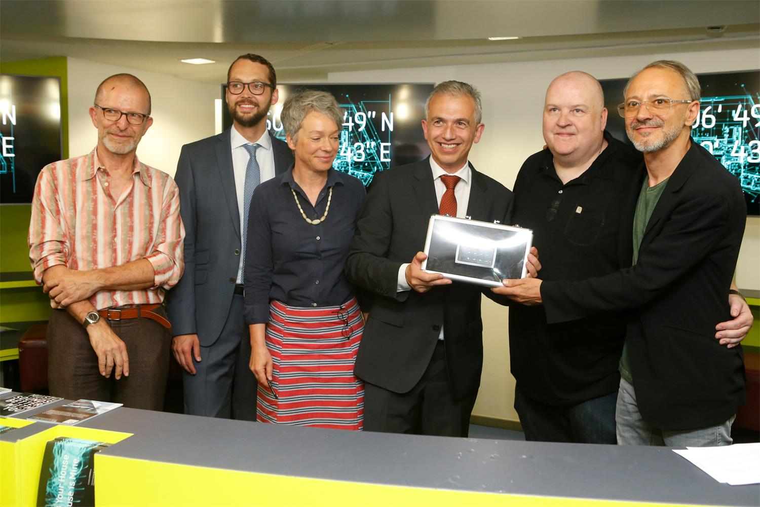Es ist ein Meilenstein für den Museums-Standort Frankfurt sowie für die deutsche Electro-Szene: Mit der Schlüsselübergabe an die Friends of MOMEM haben Oberbürgermeister Peter Feldmann, Kulturdezernentin Ina Hartwig, Bau- und Liegenschaftsdezernent Jan Schneider, Planungsdezernent Mike Josef und Personaldezernent Stefan Majer am Donnerstag, 7. Juni, den Weg für Frankfurts neuestes Museum, das Museum Of Modern Electronic Music (kurz MOMEM) geebnet.