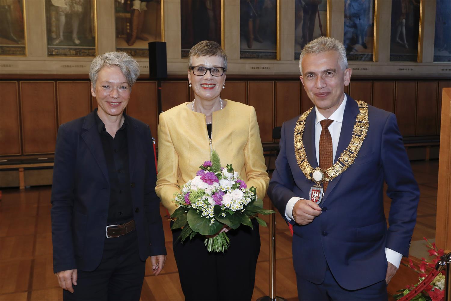 Kulturdezernentin Dr. Ina Hartwig, Dr. Evelyn Brockhoff und Oberbürgermeister Peter Feldmann (v.l.n.r.) bei der Verabschiedung, Foto: Uwe Dettmar