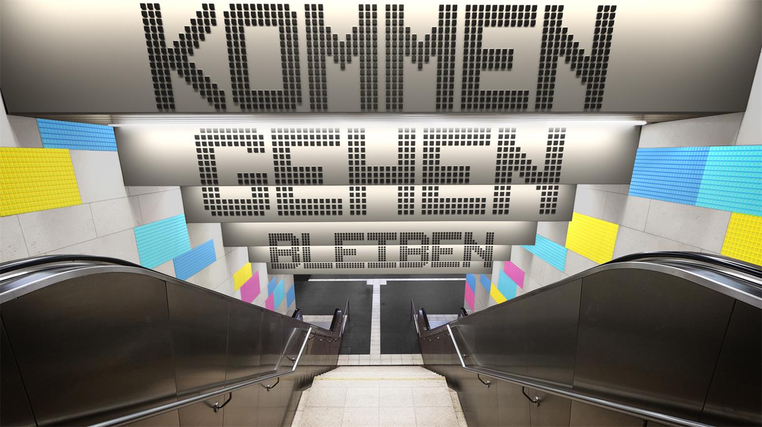 Das vom Frankfurter Atelier Markgraph im Auftrag des Kulturdezernats entworfene Konzept sieht eine grundlegende Umgestaltung des U-Bahnstationsbereichs der Linien U4 und U5 der Verkehrsgesellschaft Frankfurt vor, um auf die elementare Bedeutung der „Gastarbeiter“ in der Geschichte der Stadt Frankfurt hinzuweisen, die sich keineswegs im Bau der U-Bahn in den 1960er Jahren erschöpft. Mit bunt belebter Wandvertäfelung und plakativen Schriftbändern kündigt sich das Thema bereits in den Treppenbereichen an. „Kommen – Gehen – Bleiben“ soll hier künftig zu lesen sein und damit das Motiv des Reisens und Pendelns mit dem der Migration verbunden werden: 14 Millionen Menschen kamen als „Gastarbeiter“ nach Deutschland, elf Millionen verließen das Land schon bald wieder, drei Millionen blieben langfristig.