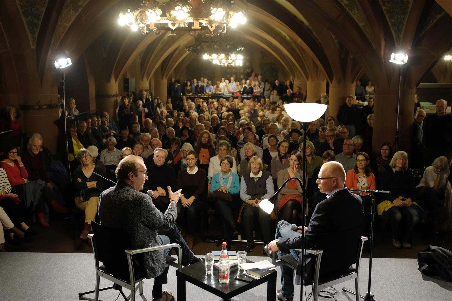 Bereits der erstmalig in der Deutschen Nationalbibliothek stattfindende Auftakt am 10. Oktober mit doppelt so vielen Plätzen wie die Jahre zuvor war ausverkauft. OPEN BOOKS erlebt eine furiose Eröffnung, zu der die Kulturdezernentin der Stadt Frankfurt, Dr. Ina Hartwig, und die stellvertretende Generaldirektorin der Deutschen Nationalbibliothek, Ute Schwens, begrüßten. Auf dem legendären „Blauen Sofa“ nahmen anschließend der frischgekürte Buchpreisträger des Jahres 2017 Robert Menasse, der Büchner-Preisträger 2014 Jürgen Becker, der französische Soziologe Didier Eribon und die Frankfurter Schriftstellerin Eva Demski Platz. Das Programm bot an den drauffolgenden Tagen eine Auslese der wichtigsten Neuerscheinungen des Herbstes, zu denen der diesjährige Ehrengast Frankreich hochkarätige Autoren wie Leila Slimani, Hédi Kaddour, Annie Ernaux und Marie NDiaye beitrugen. Sie lasen in der Evangelischen Akademie Frankfurt. Das Sachbuch im Haus am Dom erwies sich erneut als Besuchermagnet. Die deutschsprachige Belletristik in den Römerhallen und dem Frankfurter Kunstverein war mit den wichtigsten Titeln prominent vertreten. Die von Jakob Hoffmann kuratierte Comicreihe ist aus dem Programm nicht mehr wegzudenken. Vor den Römerhallen, dem traditionsreichen Veranstaltungsort von „Literatur im Römer“, stand das Publikum schon lange vor Beginn Schlange und wartete geduldig auf den Einlass, um die 16 besten Romane des Herbstes in kurzen Gesprächen und Lesungen präsentiert zu bekommen. Rund um den Römer war der Eintritt zu allen Veranstaltungen frei.