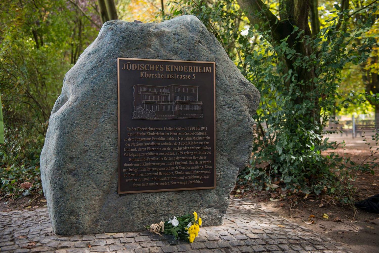 In der Ebersheimstraße Nr. 5 befand sich von 1930 bis 1941 das jüdische Kinderheim der Flersheim-Sichel-Stiftung, in dem Jungen aus Frankfurt lebten. Nach dem Machtantritt der Nationalsozialisten wohnten dort auch Kinder aus dem Umland, deren Eltern sie vor der wachsenden antisemitischen Verfolgung zu schützen versuchten. 1939 gelang mit Hilfe der Rothschild-Familie die Rettung der meisten Bewohner durch einen Kindertransport nach England. Das Heim wurde neu belegt. Ein Rettungsversuch nach Ecuador misslang. Etwa 80 Bewohnerinnen und Bewohner, Kinder und Heimpersonal, wurden ab 1941 in Konzentrations- und Vernichtungslager deportiert und ermordet. Nur wenige überlebten.
