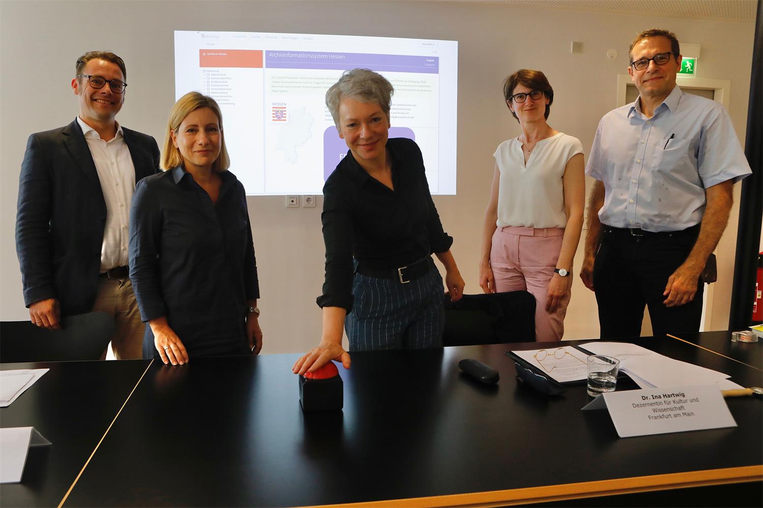 Am Mittwoch, 29. Juni 2022, schaltete Dr. Ina Hartwig, Dezernentin für Kultur und Wissenschaft, im Institut für Stadtgeschichte Frankfurt am Main das neue Archivinformationssystem Arcinsys frei.