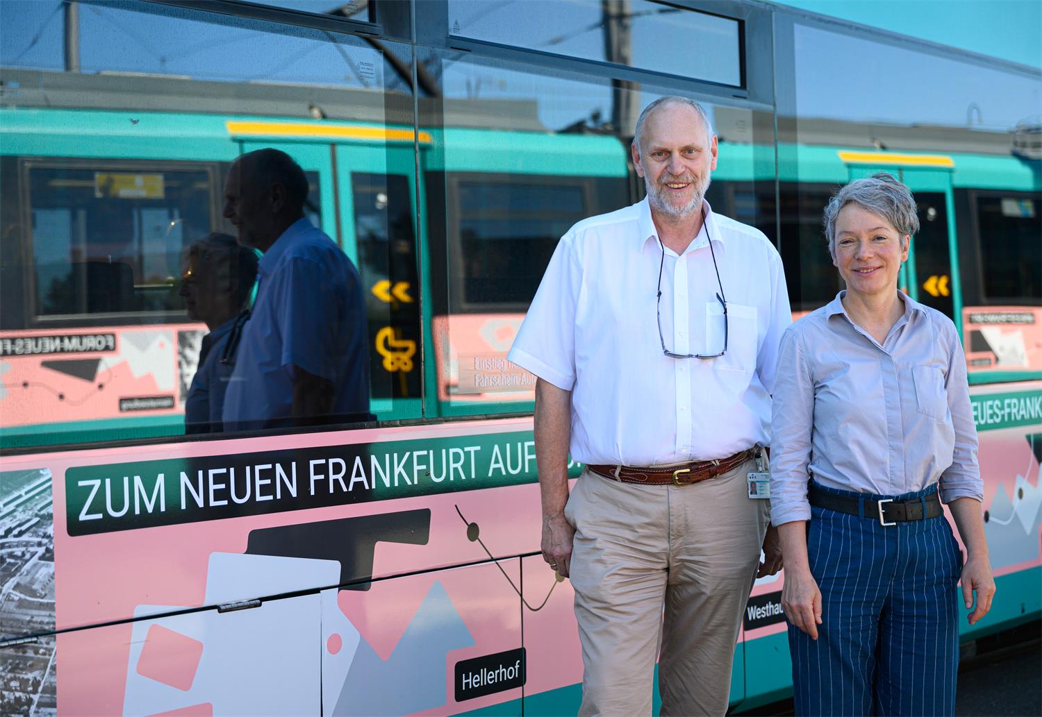01.07.2019 - Moderne Mobil: Ina Hartwig und Thomas Wissgott präsentieren neu gestalteten Bus und Bahnen zum Neuen Frankfurt