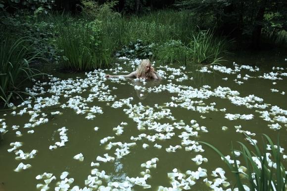 Mit „060814-8816 Hommage an Monet (Jessica & ‚Seerosen‘)“, 2014 aus der Serie WALDLIFE, hat eines der Hauptwerke der diesjährigen Preisträgerin der Goethe-Plakette Sandra Mann einen Platz in der Städtischen Kunstsammlung gefunden.