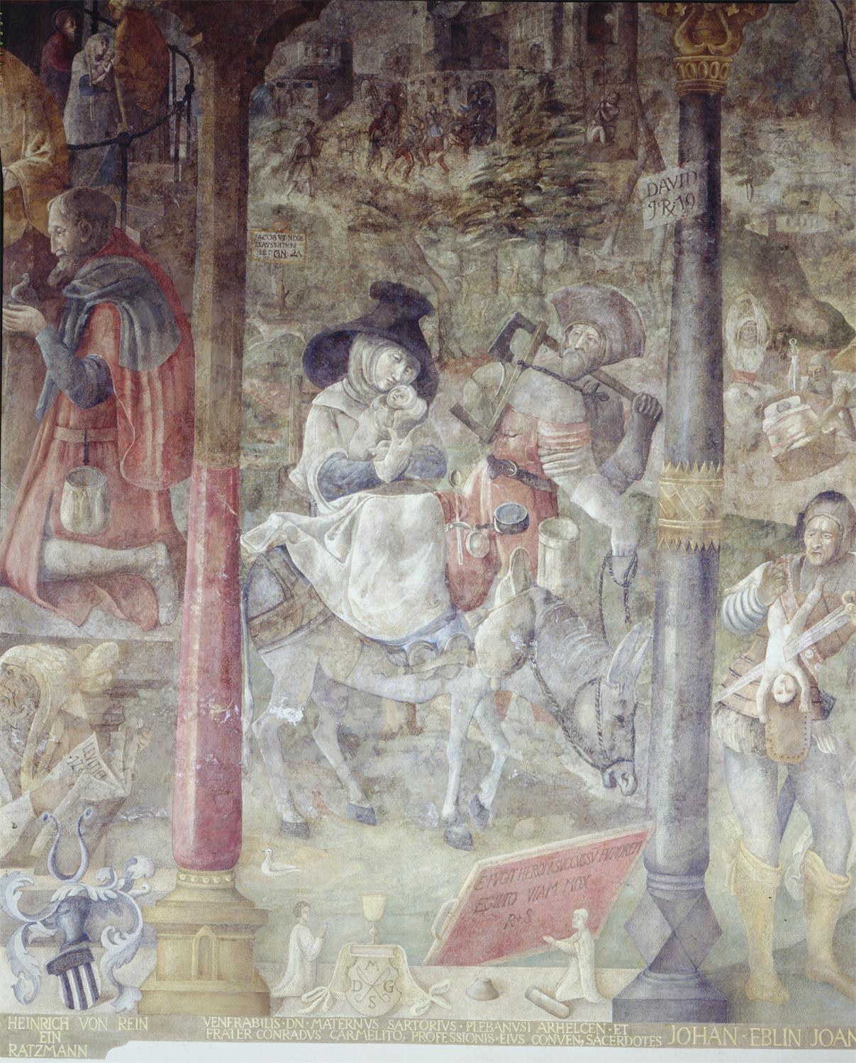 Kurz nach 1240 gegründet entwickelte sich das Karmeliterkloster aus bescheidenen Anfängen noch im Spätmittelalter zu einer großen Klosteranlage mit Kirche, Funktionsbauten und eigenem Bestattungsplatz. Seine heutige Form erhielt es im 15. Jahrhundert. In dieser Zeit wurde die Kirche erweitert sowie der Kreuzgang und das nördliche Hauptgebäude mit Refektorium und Dormitorium erbaut. Es ist großzügigen Stiftungen zu verdanken, dass der schwäbische Maler Jörg Ratgeb in den Jahren 1514 bis 1521 den Kreuzgang und das Refektorium ausmalen konnte. Die Hauptgruppe der Stifter bildete das Frankfurter Patriziat, daneben traten vier Reichsfürsten als Stifter auf, die anlässlich der Kaiserwahl 1519 in Frankfurt weilten, ebenso Geistliche, gräfliche Nachbarn, Ritter im Dienst der Stadt, Bruderschaften und auswärtige Kaufleute. Die Darstellungen der Passions- und Heilsgeschichte im Kreuzgang sowie die Ordensgeschichte der Karmeliter im Refektorium zählen zu den größten und bedeutendsten vorbarocken Wandmalereien nördlich der Alpen.