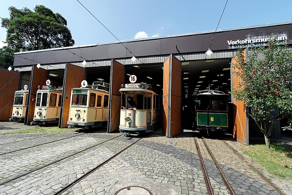 Mobilität in Vergangenheit und Zukunft - wie alles anfing, zeigt das Frankfurter Verkehrsmuseum. Zwei ehemalige Wagenhallen wurden 1984 zum Verkehrsmuseum der Stadtwerke umgebaut.