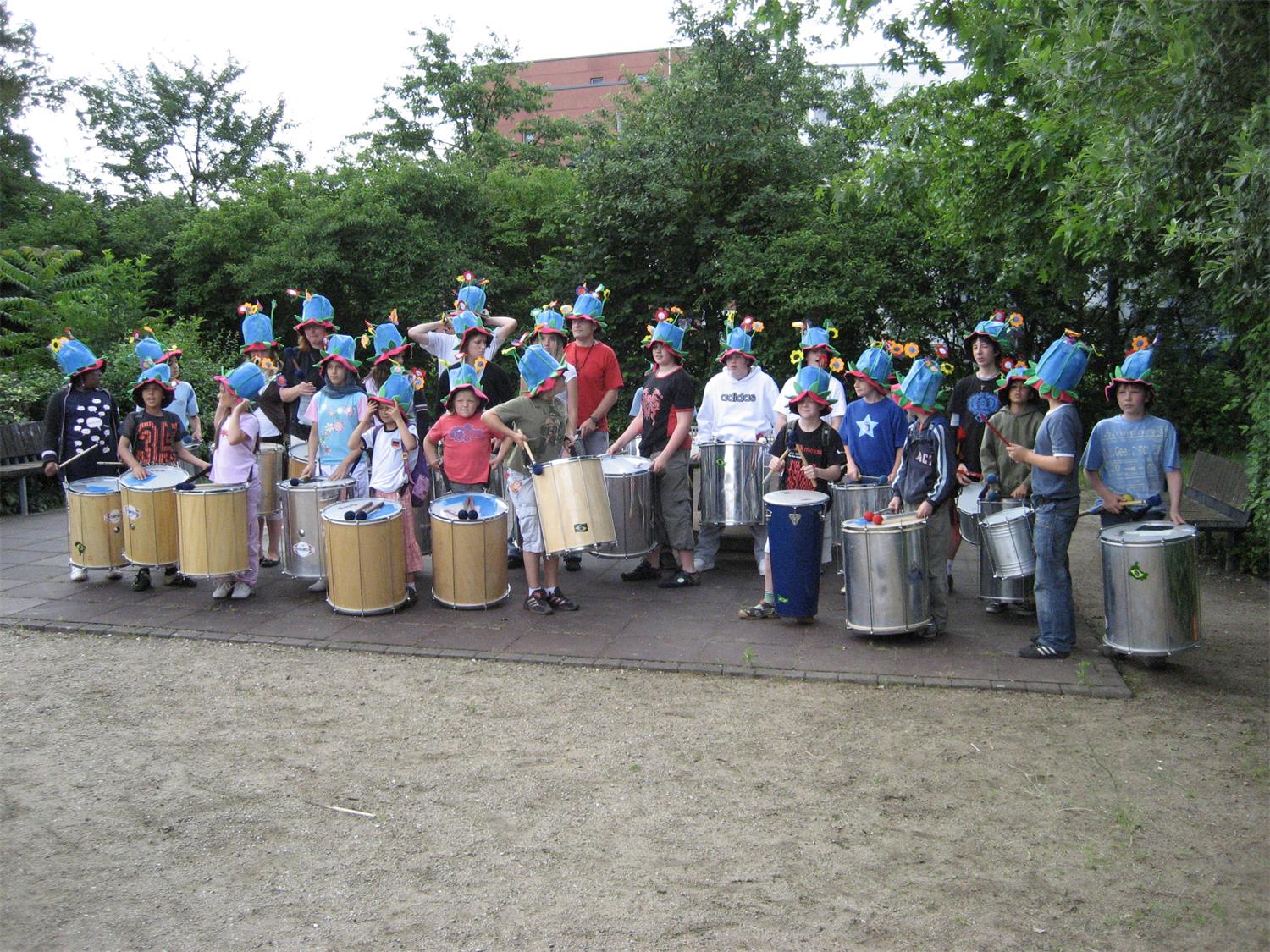 • Percussiongruppen mit Kindern und Jugendlichen (brasilianisch, kubanisch und afrikanisch)
