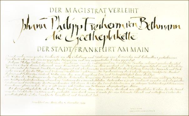 Alle drei Jahre verleiht die Stadt Frankfurt am Main zur Feier des Geburtstages Goethes den Goethepreis. Im Jahr 2014 erhielt ihn der Literaturwissenschaftler Peter von Matt.