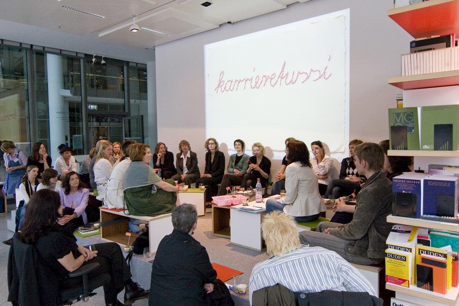 Frankfurter Kranz is coordination point and information pool for women working in culture in Frankfurt. Planned are discussion evenings for the interchange of themes and professionalization and further education programmes to strengthen the competencies of women working in culture. Frankfurter Kranz should serve as a forum for input and inspiration and in the long term initiate its own cultural projects.